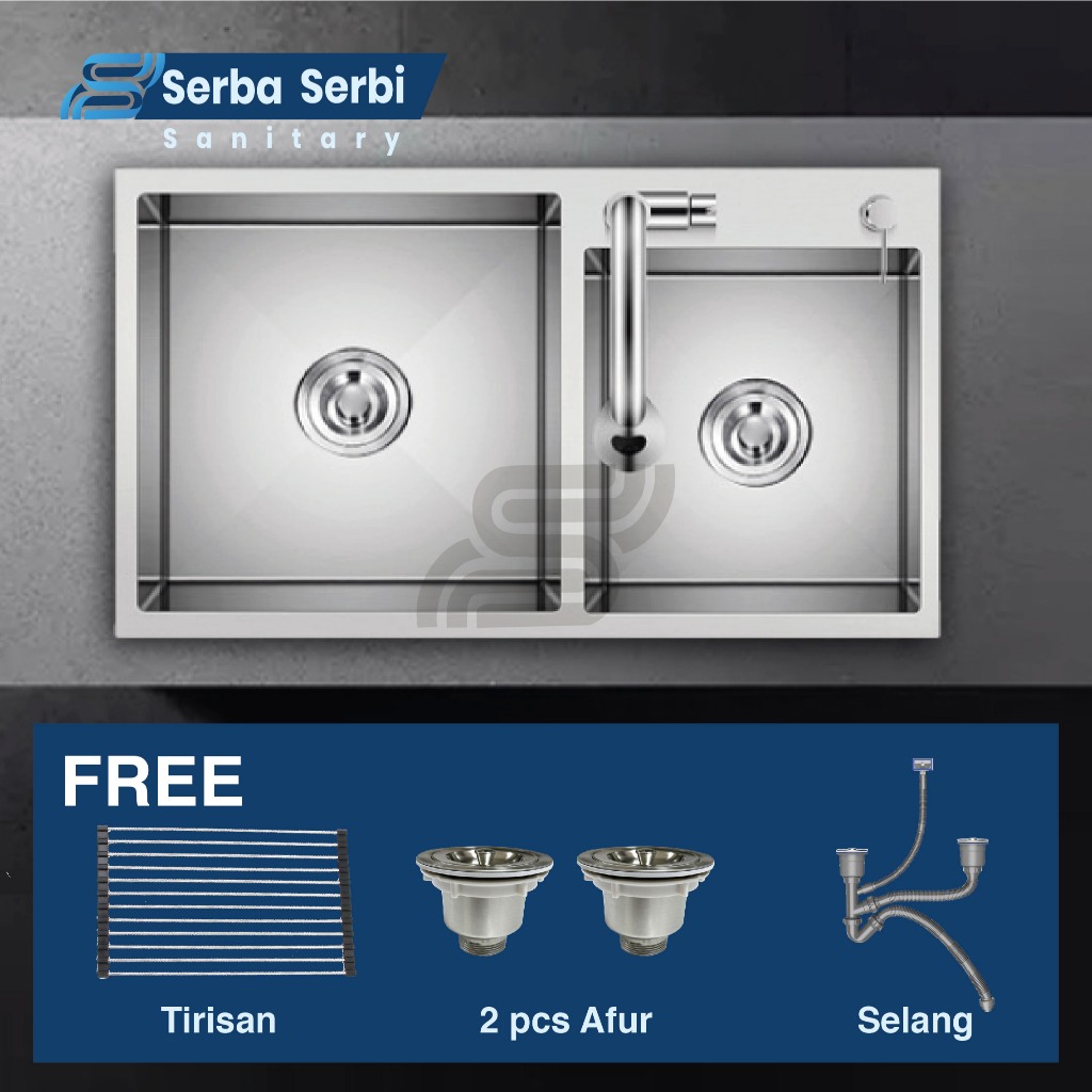 Wastafel Cuci Piring Stainless | Bak Cuci Piring | Double Bowl (RC- KS -8245) | Serba Serbi Sanitary