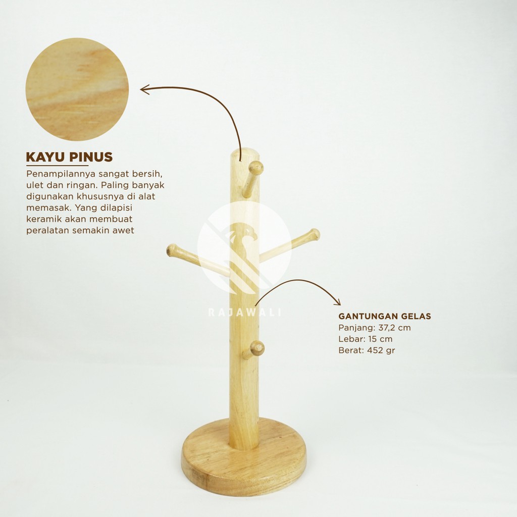 Gantungan Gelas Kayu Pinus Dapur | Peralatan Dapur Rajawali Kraftindo