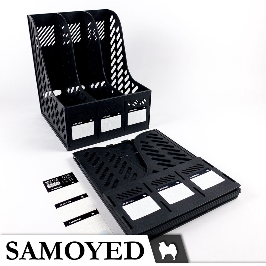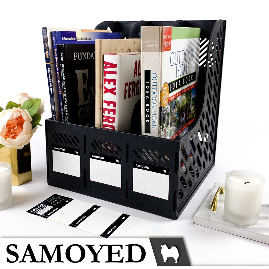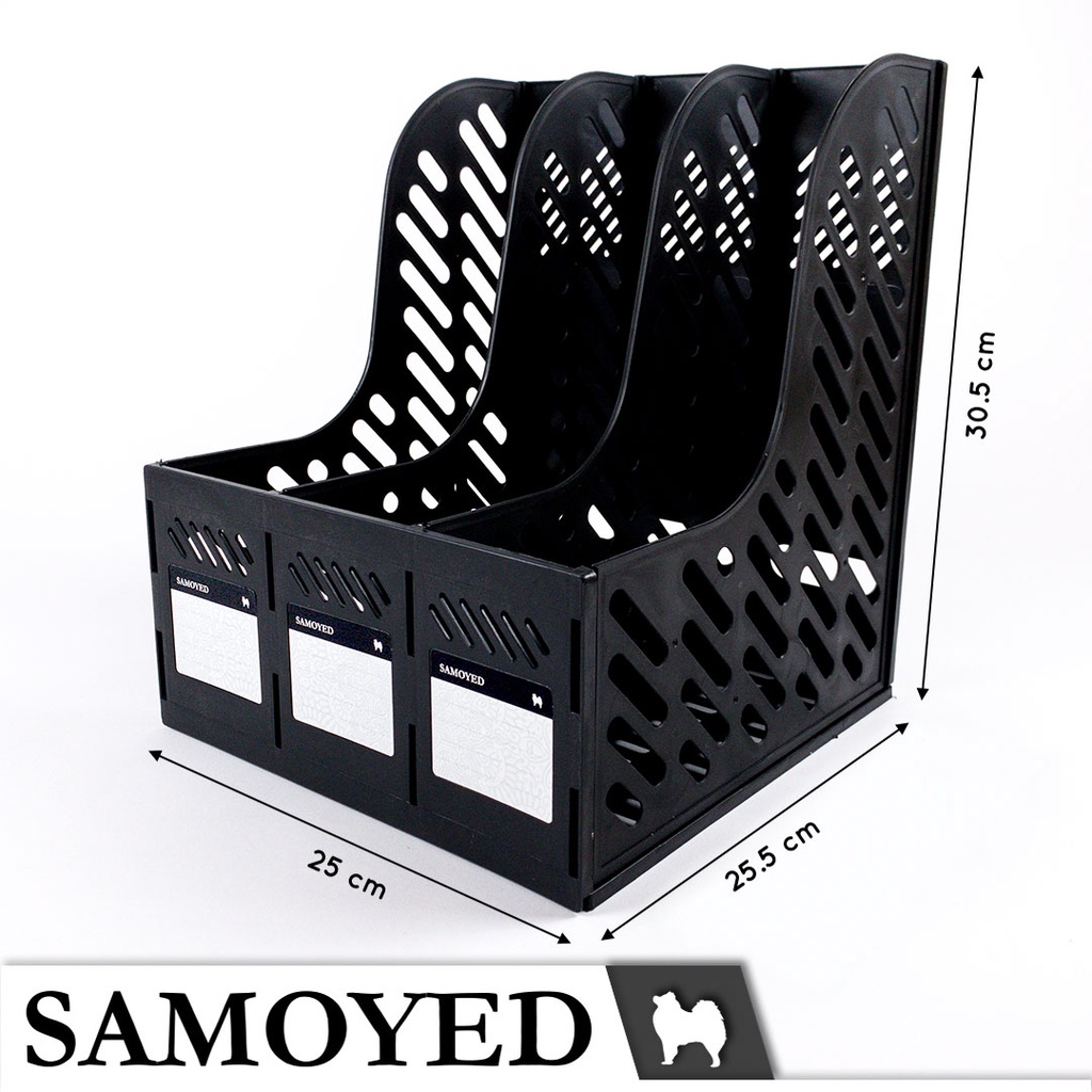 Tempat / Kotak / Keranjang / Rak Plastik Dokumen / Majalah / Magazine / Box File 3 Columns / Kolom / Kotak / Sekat / Susun Samoyed BXF-C3