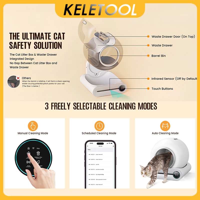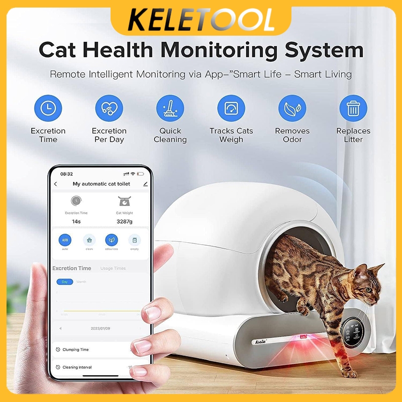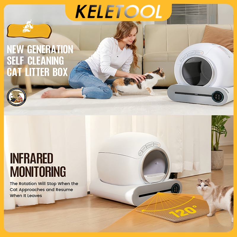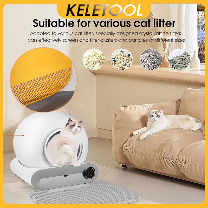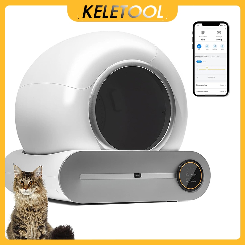 Tempat Kotoran Kucing Ukuran Besar Otomatis WIFI Smart Professional Cat Litter Remote Apps Control Kontrol Layar LED Pembersih Kotak Kotoran Kucing 9L Penghilang Bau Kotoran Kucing Otomatis