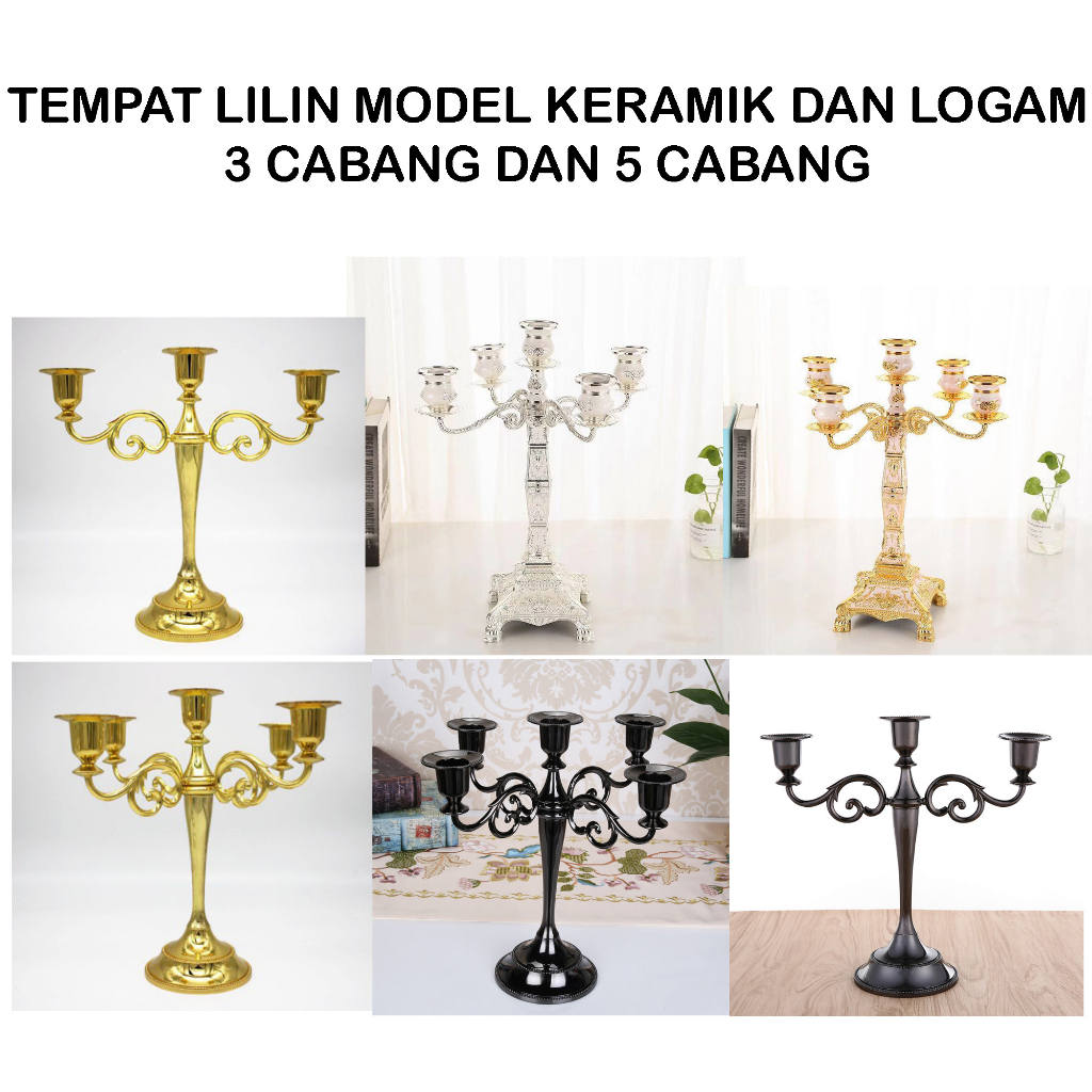 Tempat Lilin Arab Bahan Logam Candle Holder Keramik Logam Cabang 5 dan Cabang 3