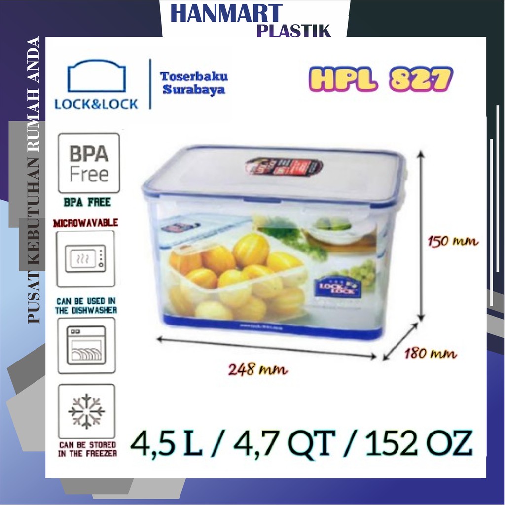 Tempat Makanan, Bumbu, Sayuran, Buah Rectangular Tall Container 4,5L - HPL827 ORIGINAL LOCK&LOCK