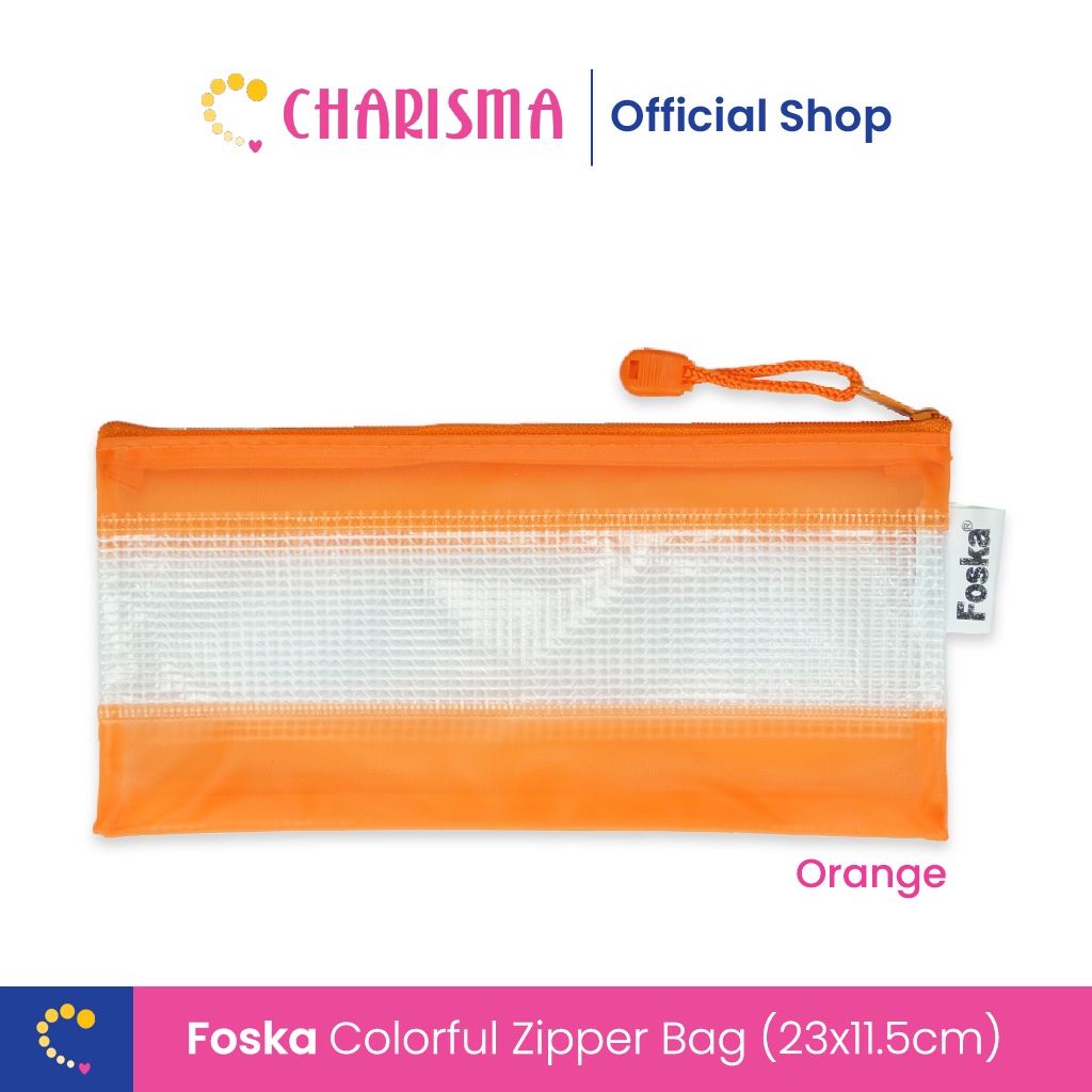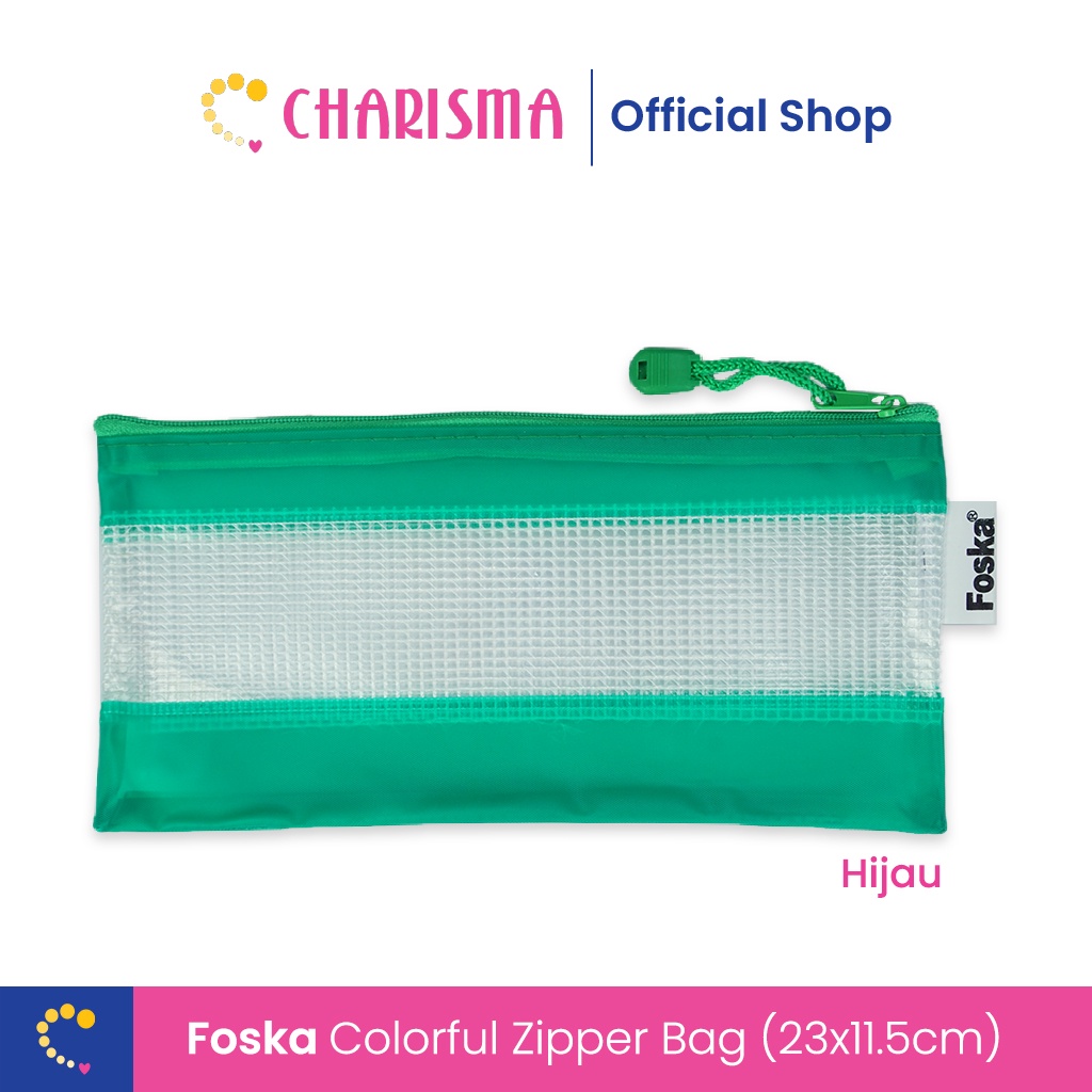 Tempat Pensil Jaring Jala Transparant - Foska Tempat Pensil Plastik Sleting - Map Zipper Pocket Transparant - Transparent Mesh Zipper Bag Map Pouch Tempat Pensil Resleting Jala