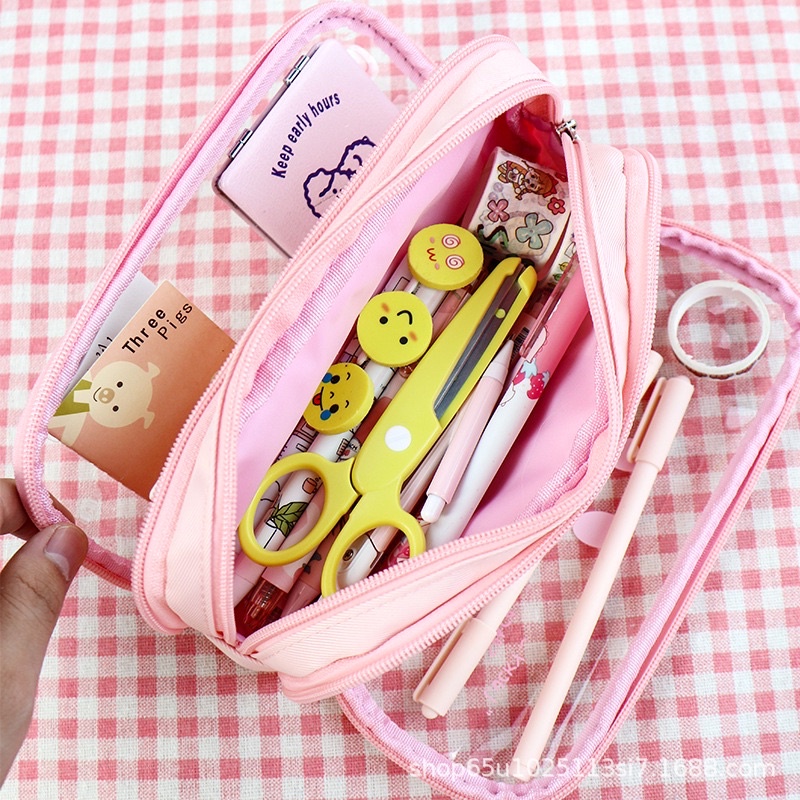 Tempat Pensil PVC Transparan Cute Animal 3 Layer