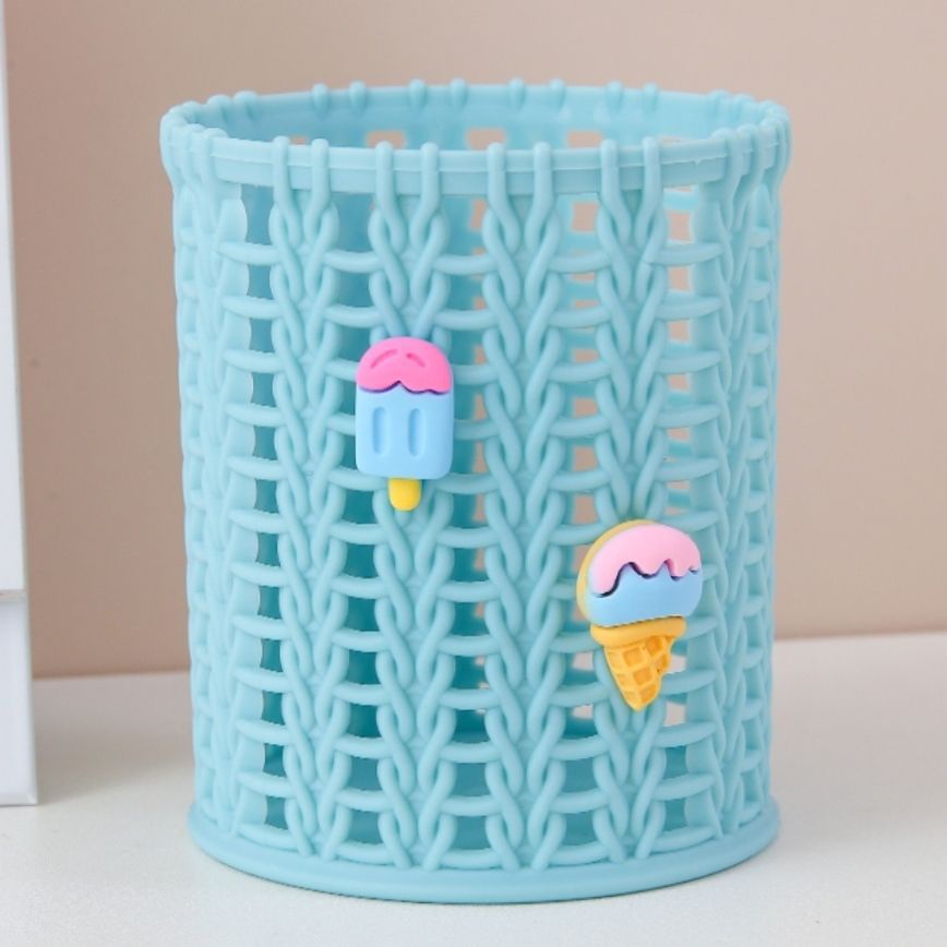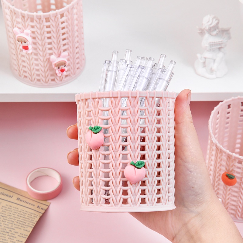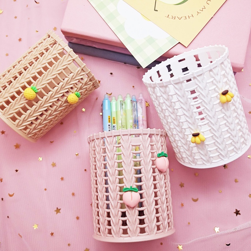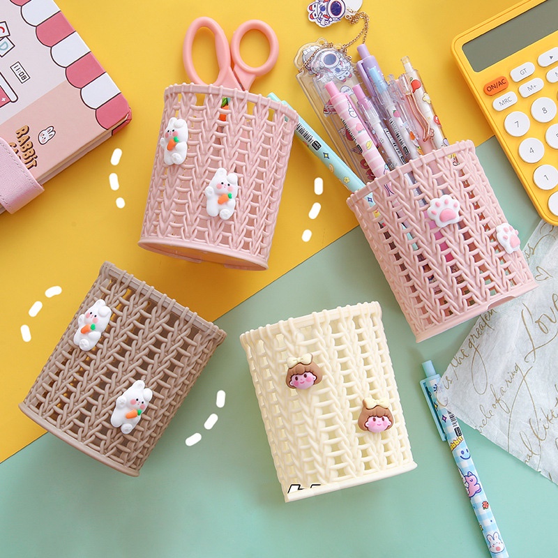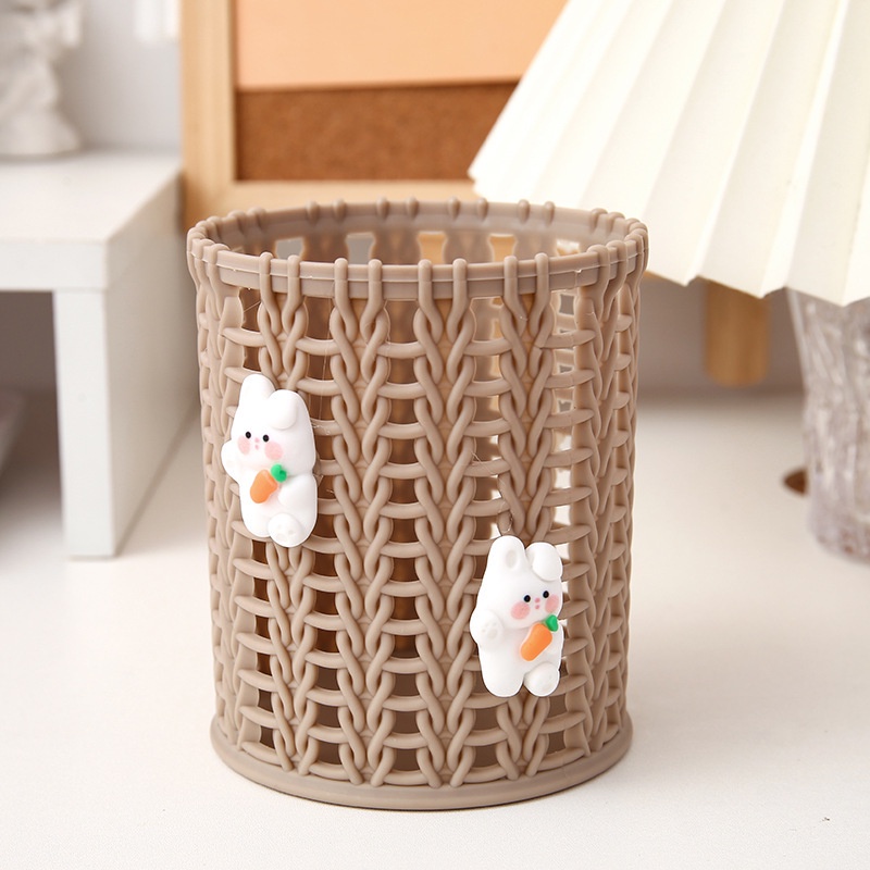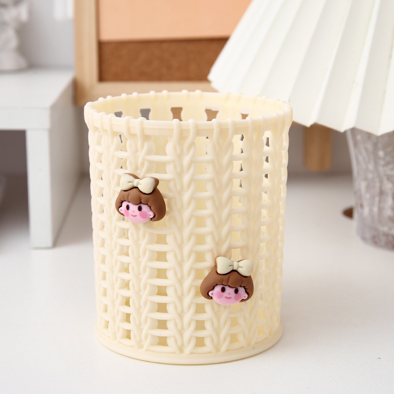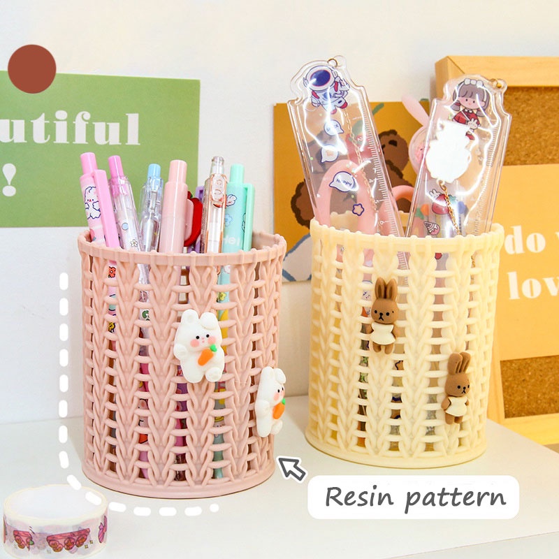 Tempat Pensil dan Pulpen ROTAN Serbaguna Dekstop Multifungsi Holder Rak Pen Bulat Busker Berkarakter Lucu Aesthetic ATK Meja Kantor Bulat