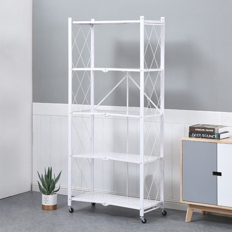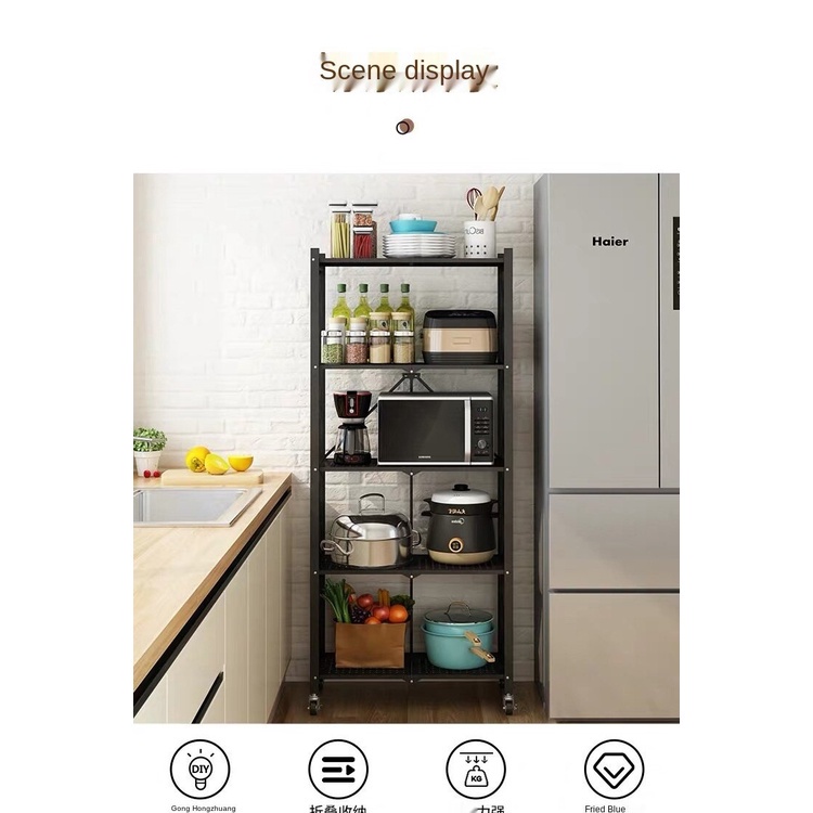 Tempat Penyimpanan 3/4/5-Tier untuk Rak Baja Dapur dengan Roda Rak Lipat Rak Organizer Kelas Komersial Tahan Lama Multifungsi