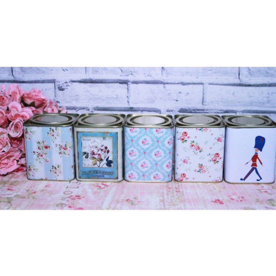 Tempat Penyimpanan Box Teh Kotak Kaleng Kopi - Tin Box Square