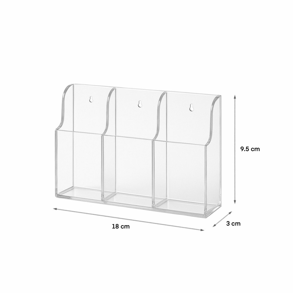 Tempat Penyimpanan Remote AC Akrilik Tempel Dinding Remot TV Holder Sekat Estetik Organizer 3 Slot Bening Transparan