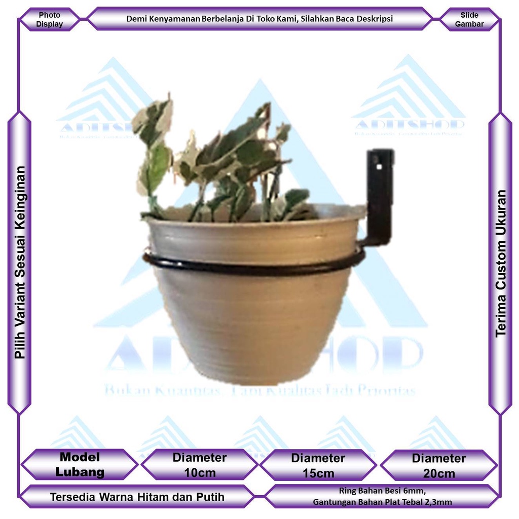 Tempat Pot Dinding Dari Besi - Standing Pot Dinding - Gantungan Pot Tempel Dinding - Ring Pot Tembok