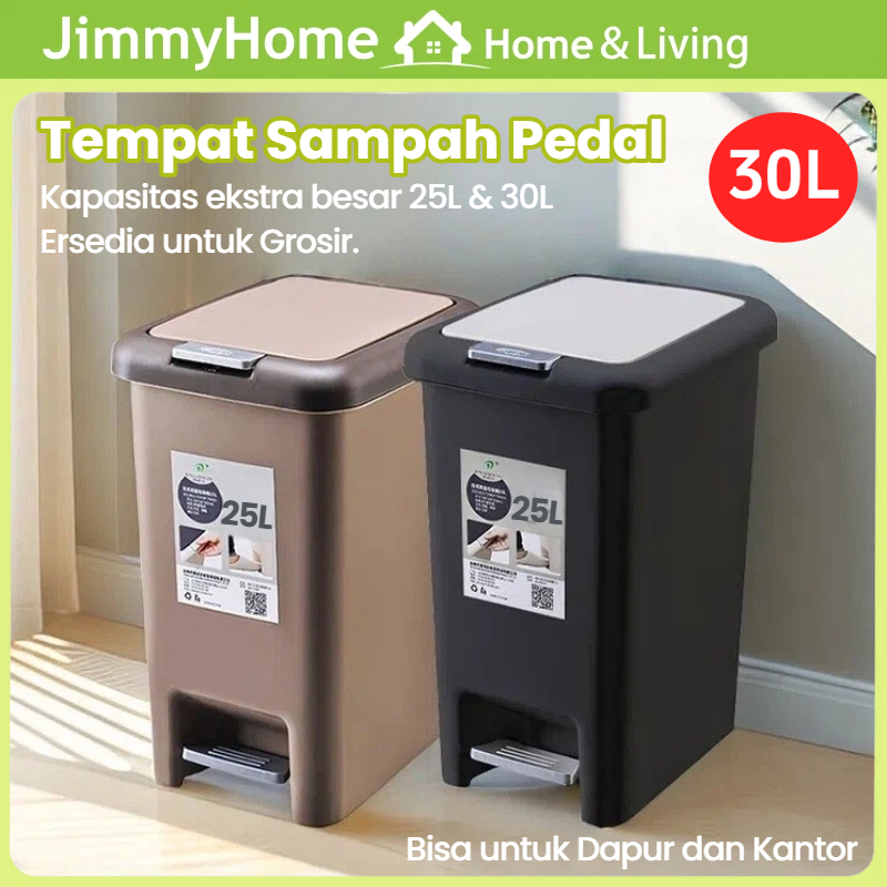 JimmyHome Tempat Sampah Injak Tertutup Tong Sampah Plastik Kotak Sampah Trash Bin Dapur Kamar Mandi Ruang Tamu 15L/20L/25L/30L