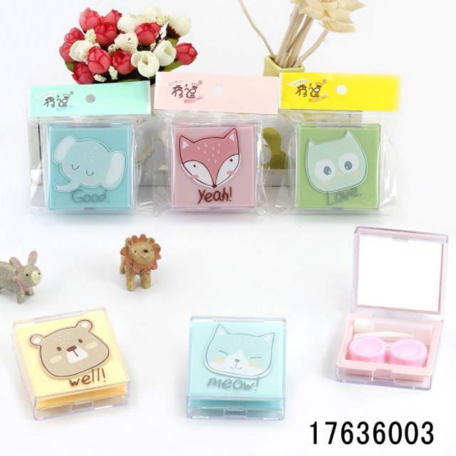 Tempat Softlens Lensa Kontak Kotak Motif Kartun Set Hewan Lucu Bagus