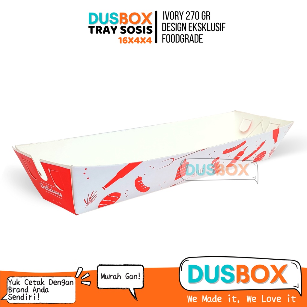 Tempat Sosis Bakar / Box Sosis / Paper Tray Sosis Kecil / Kemasan Sosis