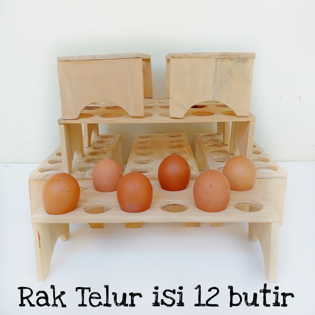 Tempat Penyimpanan Telur / Rak Telur Duduk / Kotak Simpan Telur / Rak Telur Kayu Egg Box isi