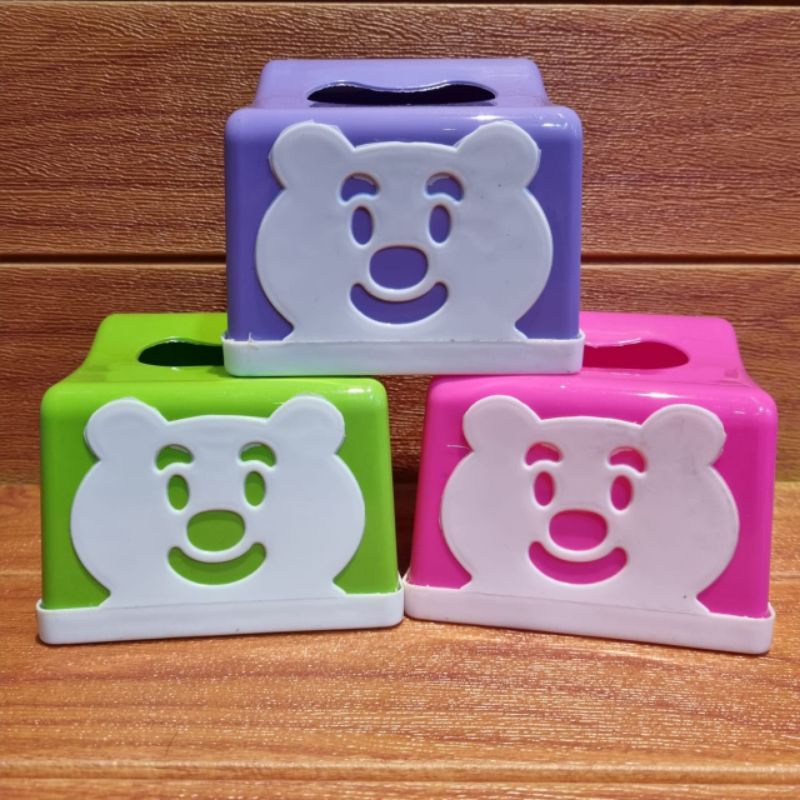 Tempat Tissue Segi Happy Bear / Tempat Tissue Plastik Karakter / Tempat Tisu Kotak / Wadah Tissue Murah