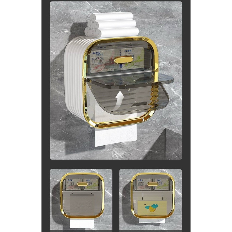 Tempat Tisu Box Tempel Tembok Akrilik/Tempat Tisu Kamar Mandi Lis Gold