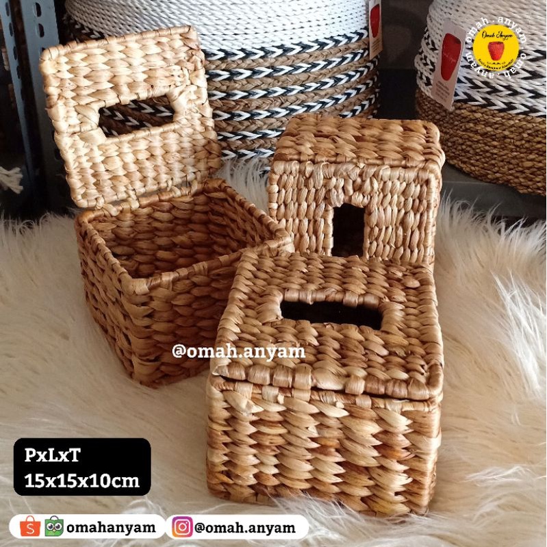 Tempat Tisu | Kotak Tisu Kecil | Tissue Box mini Eceng Gondok rangka besi