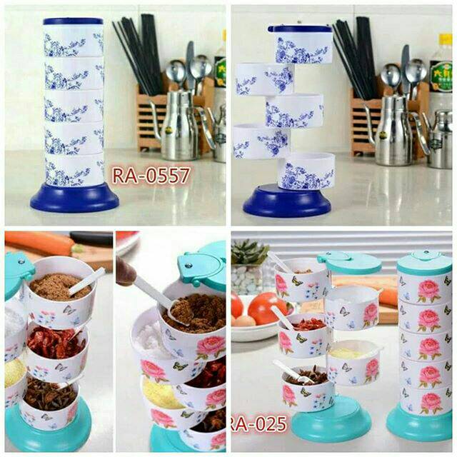 Tempat bumbu putar / tempat bumbu 5 susun / tempat bumbu unik