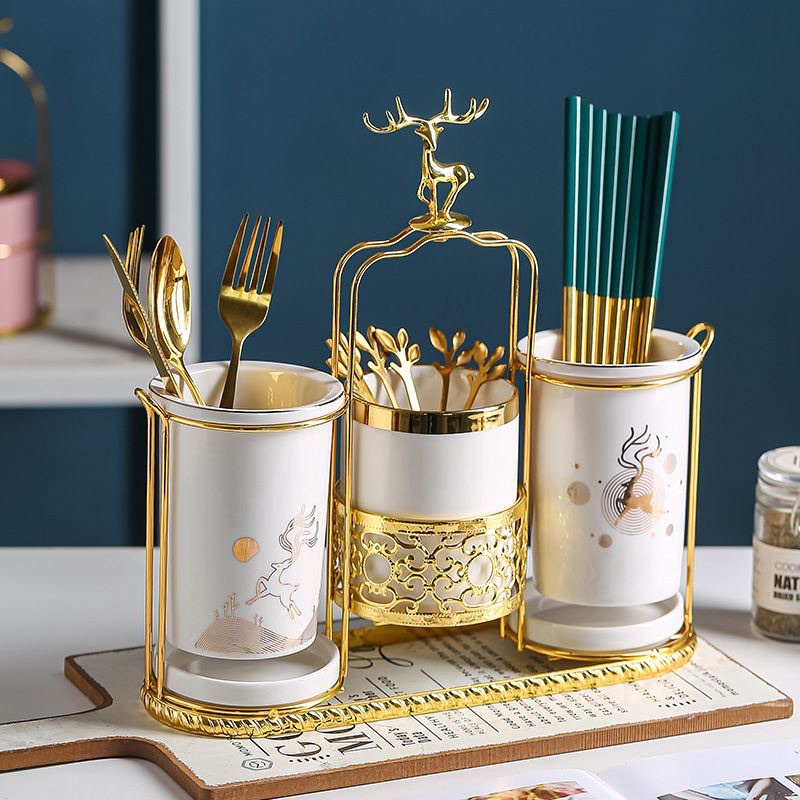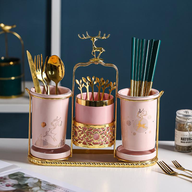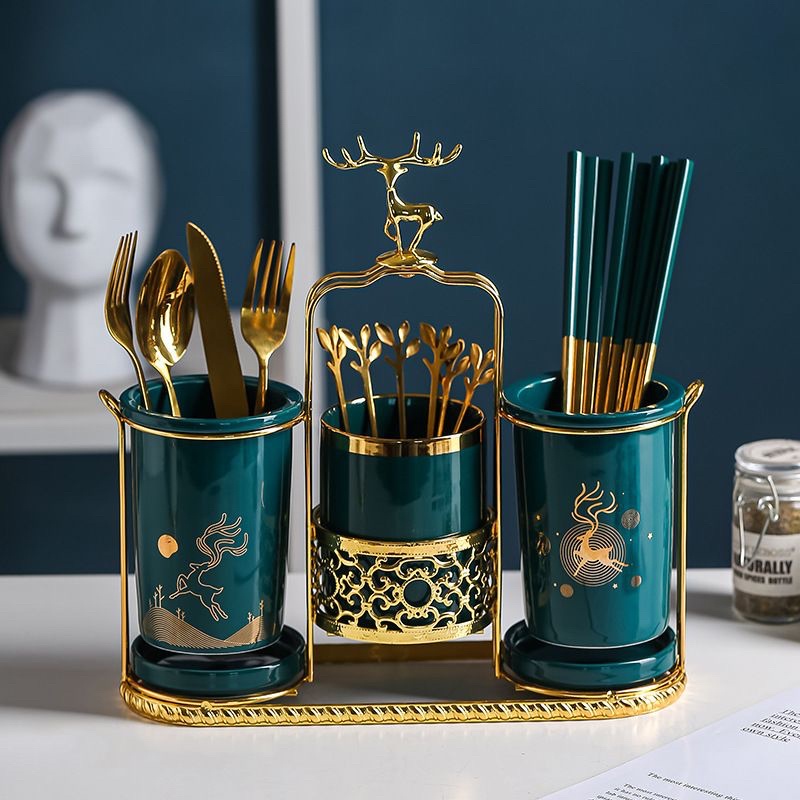 Tempat sendok set / rak sendok keramik motif rusa/ rak penyimpanan ceramic set