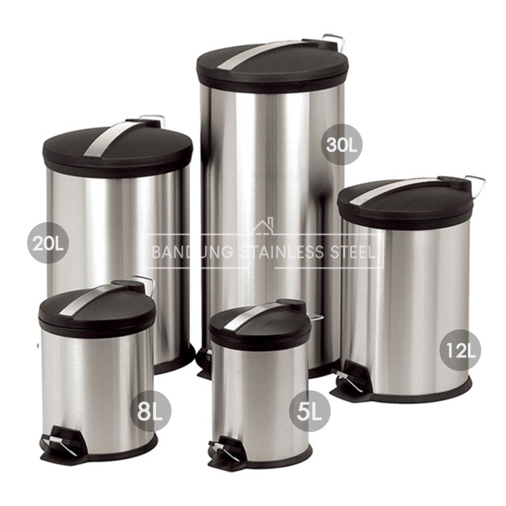 Tempat tong sampah 20 liter stainless injak Rubbish bin tutup plastik