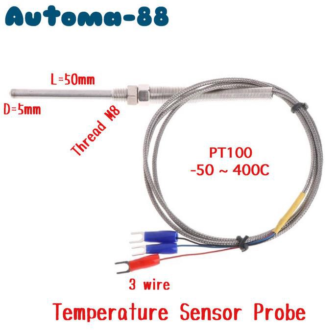 Sensor Suhu RTD PT100 Thermocouple PT-100 Probe M8 1M 2M 3M Automa88 Dijamin