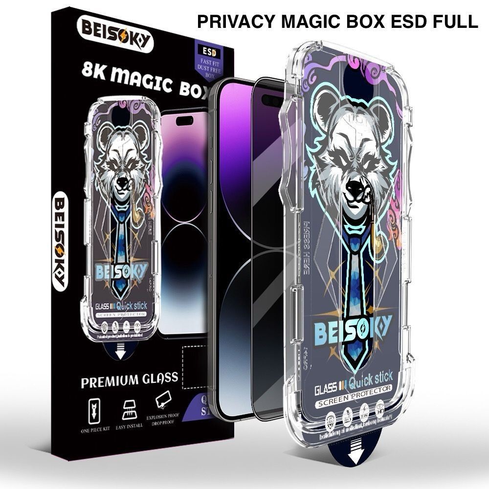 Tempered Glass Clear HD 8K Magic Box ESD Auto Apply IPHONE X XR XS 11 12 13 14 15 SERIES / MAX / PRO / PRO MAX / PLUS + Anti Gores Bening BEISOKY Full Glue APPLE Best Quality Kaca Alat Pasang Full Screen Guard Protector Pelindung Layar