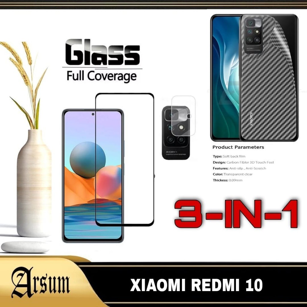 Tempered Glass Layar Hp Xiaomi Redmi 10 , Redmi 10 Prime , Note 11 4G Garskin Skin Carbon + Camera ( Full Lem Full Screen )