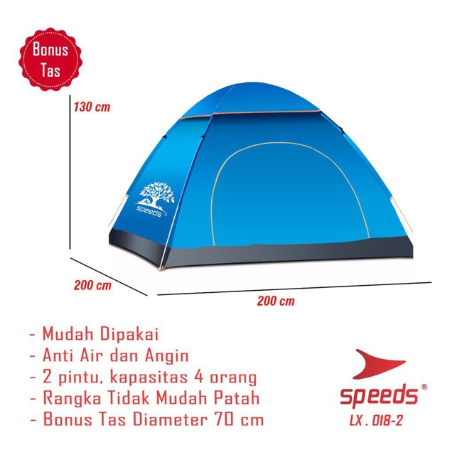 Tenda Camping Kapasitas 4 ORANG TENDA OTOMATIS OUTDOOR INDOOR TENDA GUNUNG SPEEDS 018-2 ORI