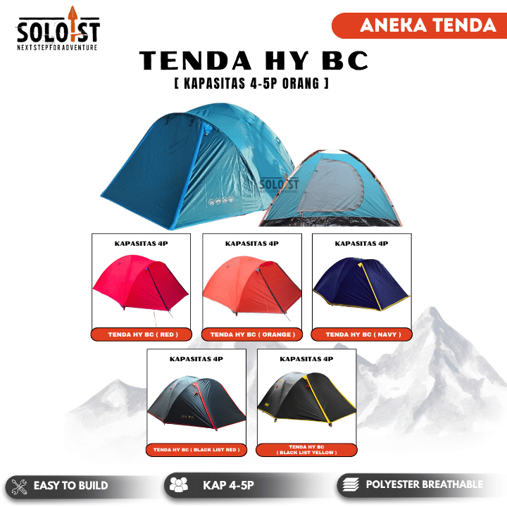 Tenda Camping Gunung Dome HY BC Waterproof Double Layer 4-5P Family Tent Outdoor Frame Fiber Kemping