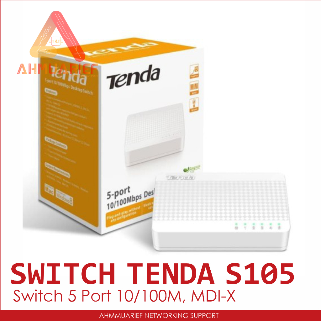 TENDA S105 SWITCH HUB 5 PORT ETHERNET UNMANAGED DESKTOP SWITCH INTERNET 10/100MBPS