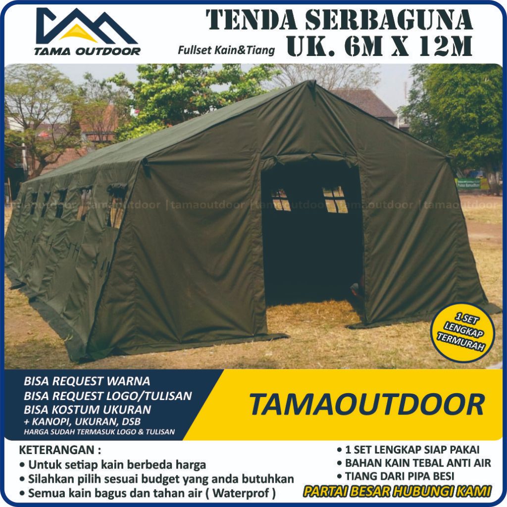 Tenda Serbaguna Posko Ukuran 6M x 12M TNI Perkemahan TNI Barak