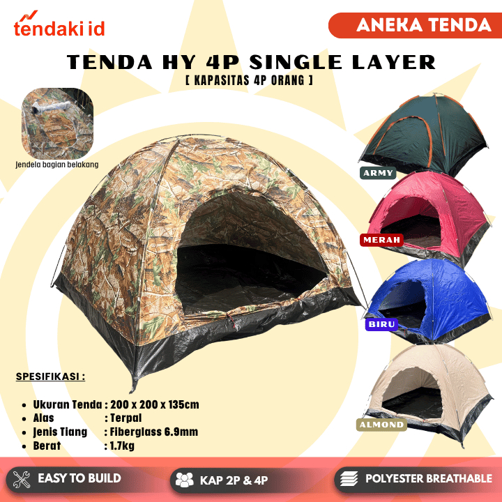 Tenda Camping Gunung Dome Elite LWY Waterproof Double Layer 4-5P Family Tent Outdoor Frame Fiber