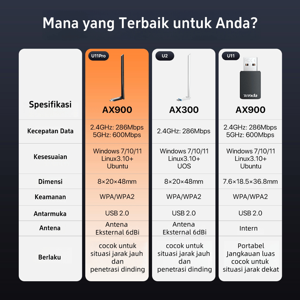 Tenda U2 AX300 Wi-Fi 6 High Gain Wireless USB Adapter