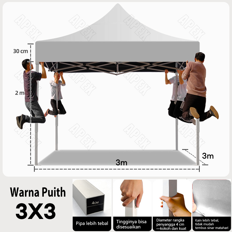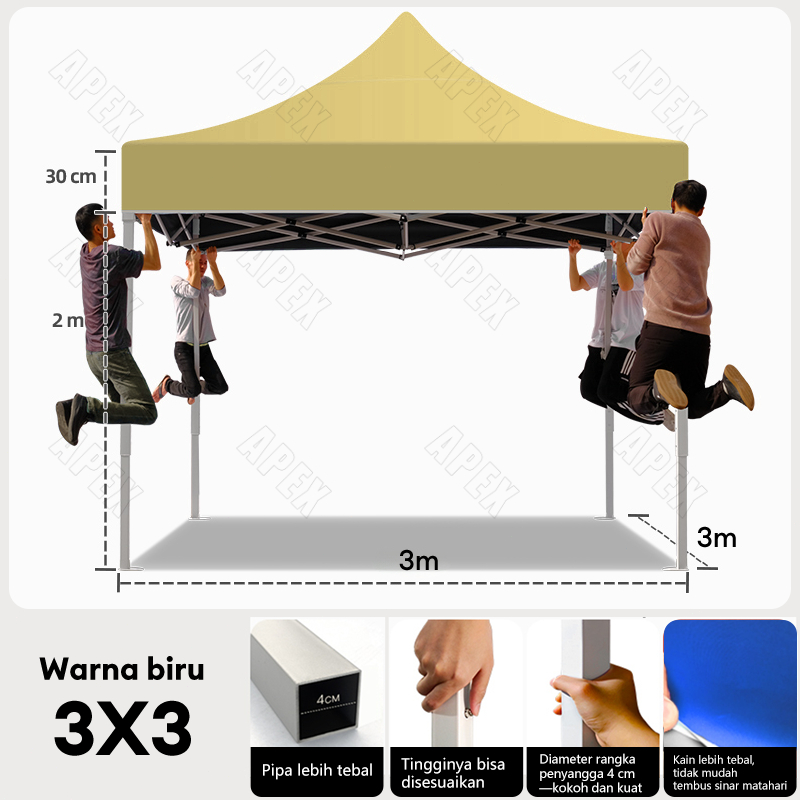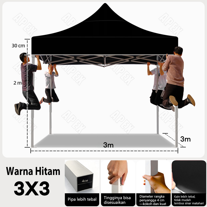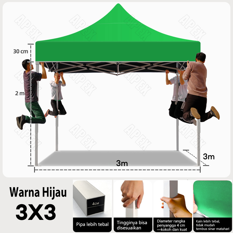 Tenda lipat 2x2/3x3 Tenda Lipat Jualan tenda jualan 1300D Outdoor Portable Waterproof Bazar Tenda Jualan Pameran Dagang