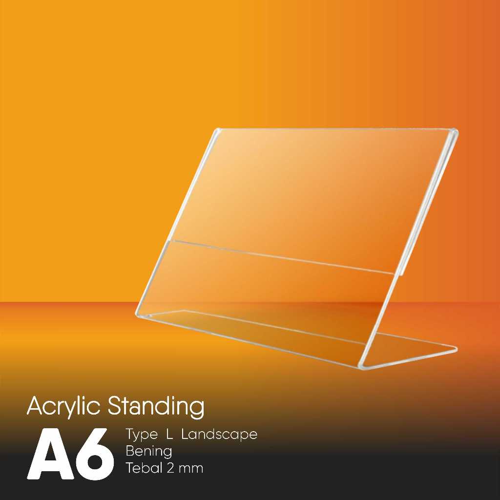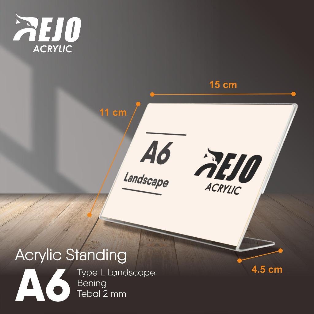 Tent card Akrilik Display Standing A6 Tipe L Landscape tempat brosur Holder Frame ukuran 11x15 cm