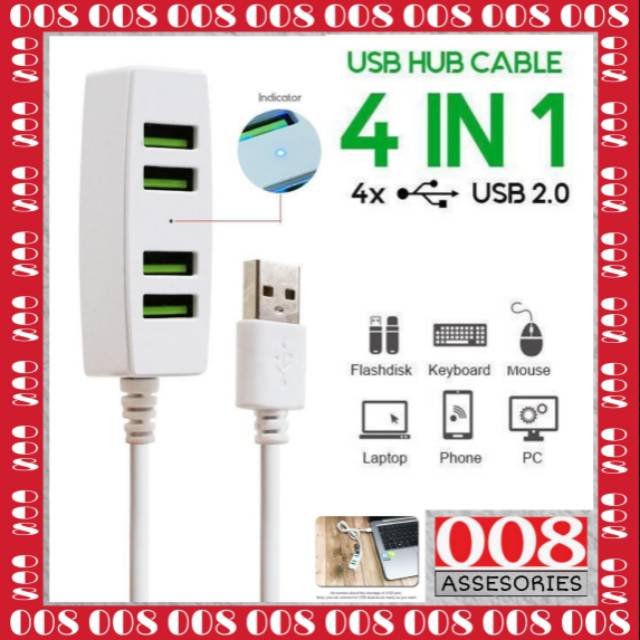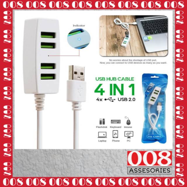 Terbaru!!! USB Hubungan Kabel 4 Port 4Port 3.0 Putih Packing Plastik