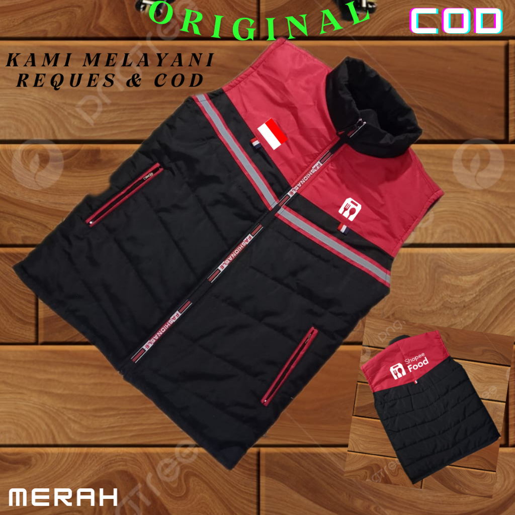 Terjamin Rompi Tebal,Hiking Shope Rompi Motor Anti Angin Shopee Jaket Rompi Driver Shope Food Rompi Tebal Waterproof Bisa Custom logo dan Tulisan Ready Stok Bisa COD