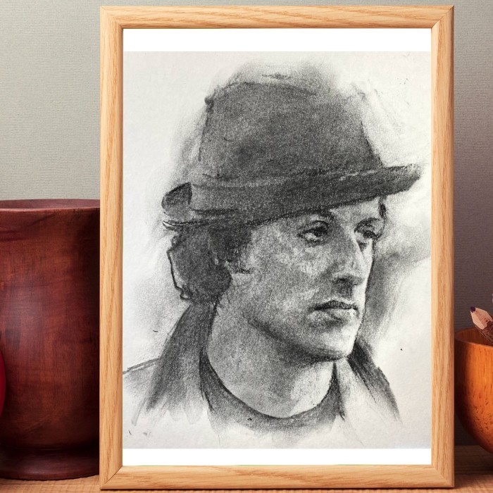 Terlaris (1 Hari Jadi) Lukisan Wajah Pakai Arang + Bingkai, Ukuran A4 (1 Wajah)