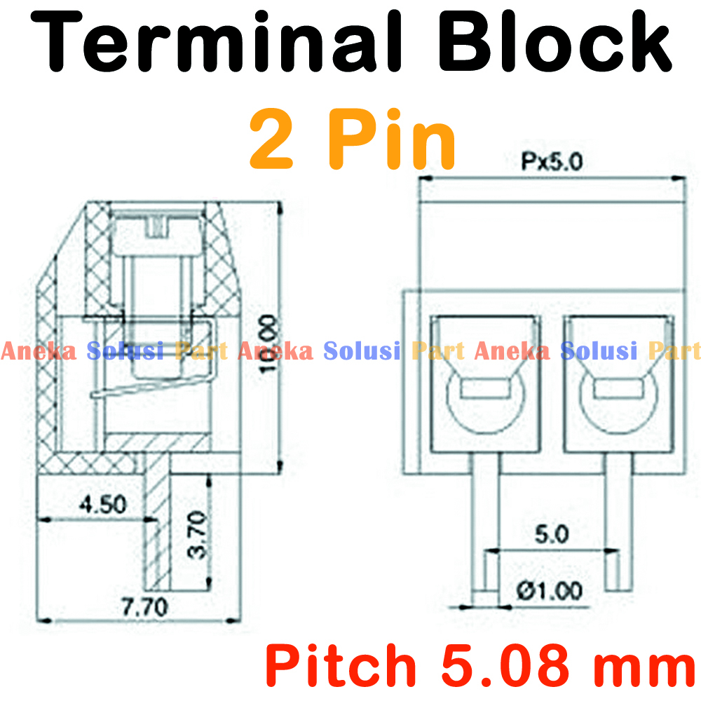 Terminal Block 2 Pin Connector Skrup Screw Pitch 5.08mm 5mm 2P Blok