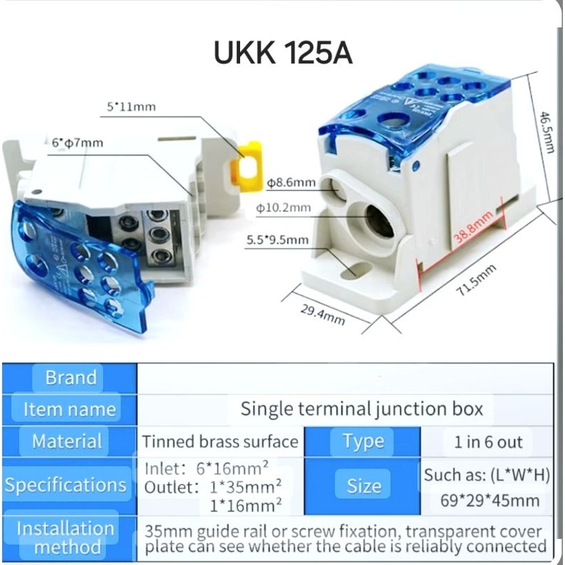 Terminal Block EWIG UKK 125A 690V Terminal Distribusi Junction Box Din Rail.