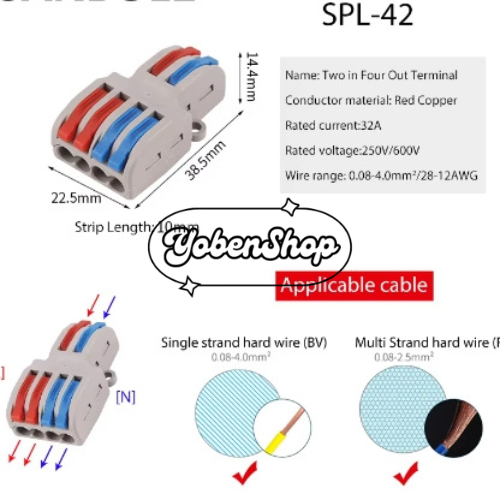 Alat Pintar Konektor Splitter Cabang Kabel Input 2 to Output 4 Kabel Terminal Universal Anti Konslet