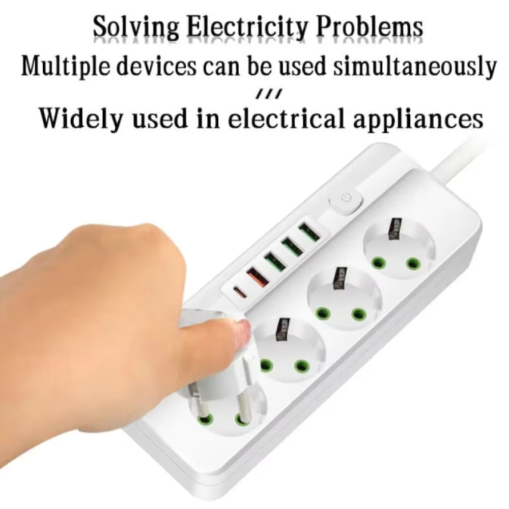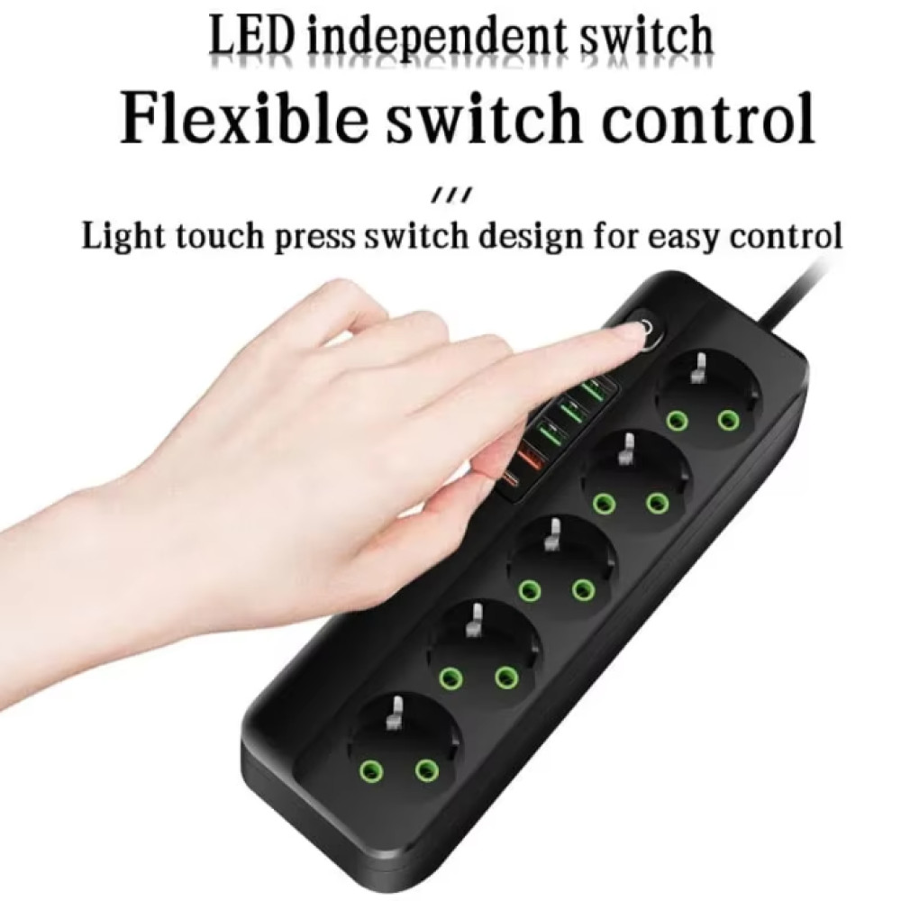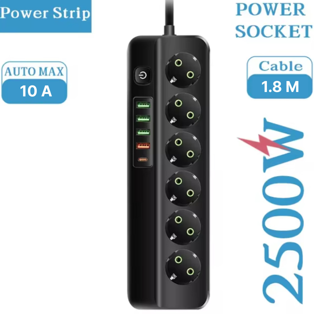 Terminal Stop Kontak 6 Lubang USB Type C EU Plug 10A 110-250V 2500W