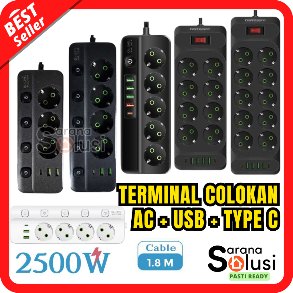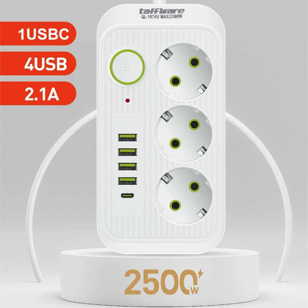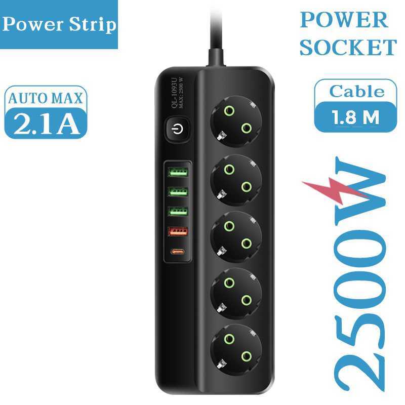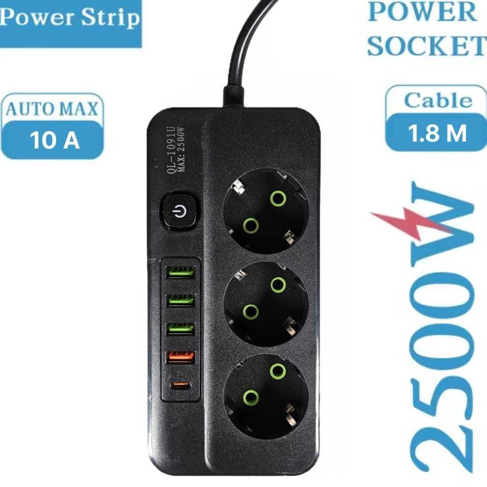 Terminal Stop Kontak 6 Lubang USB Type C EU Plug 10A 110-250V 2500W