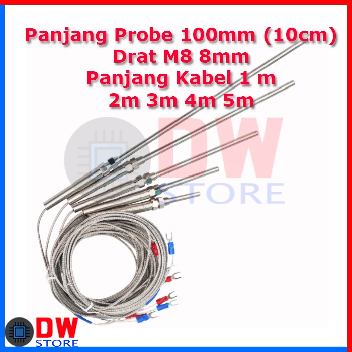 Termokopel Thermocouple K Sensor Suhu 10cm Drat M8 Panjang Kabel 1m 2m 3m 4m 5m