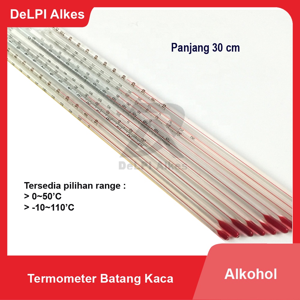 Termometer Thermometer Batang Stick Kaca Glass Alkohol Untuk Laboratorium Range Suhu 0*C~50*C & -10*C~110*C panjang 30 cm