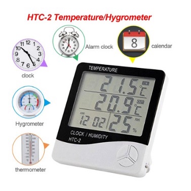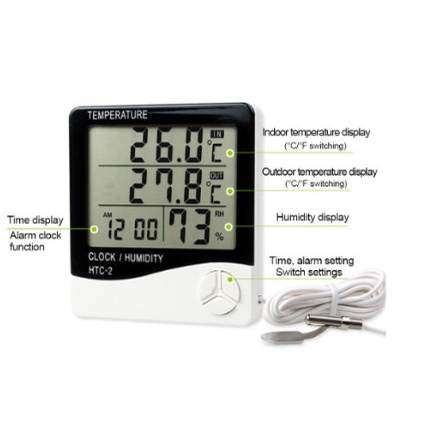 Termometer hygrometer Suhu Ruang Digital Jam thermometer in out htc-2