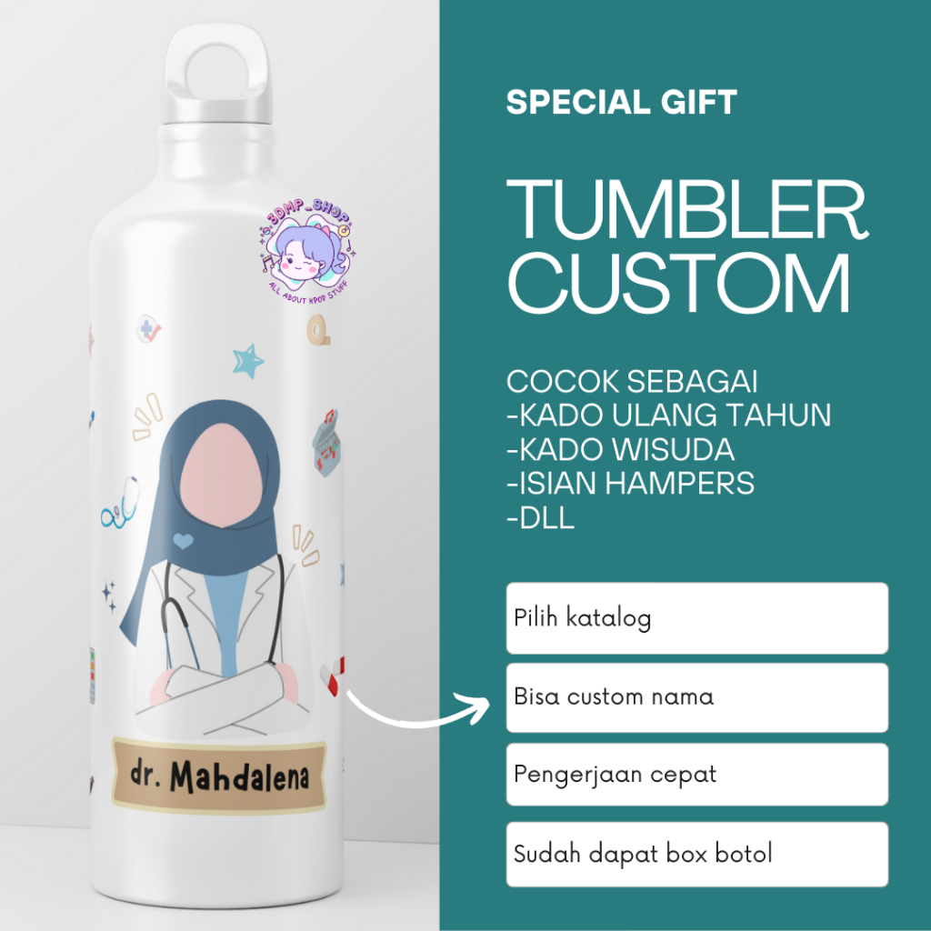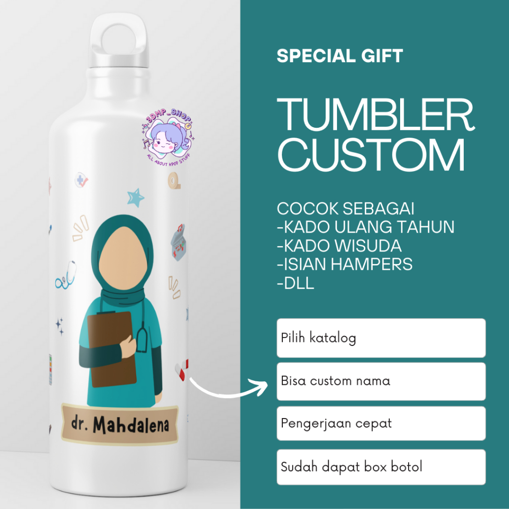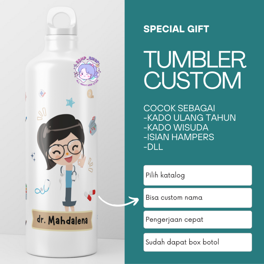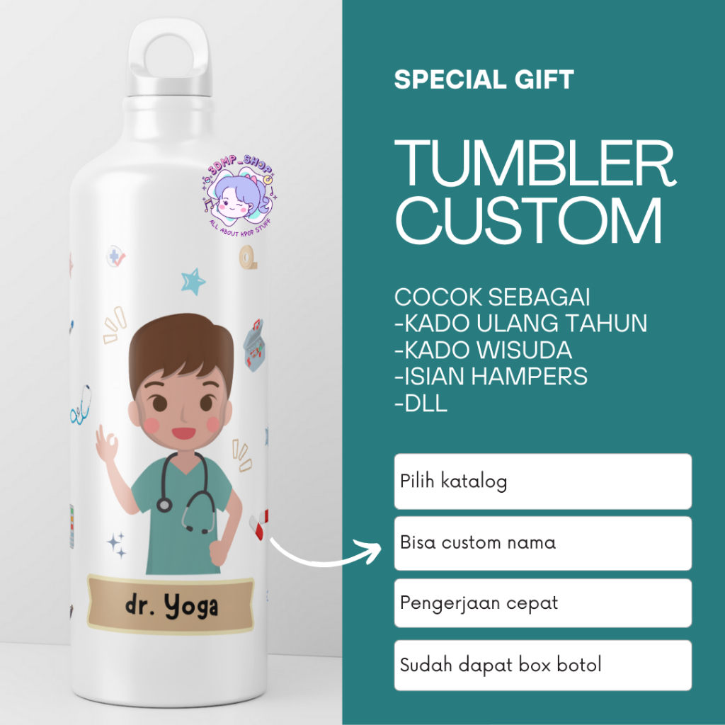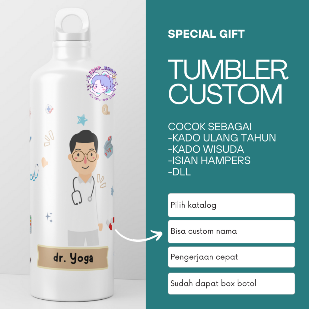 Termos Botol Minum Tumbler Sport Custom Desain Doktor Gift Series Kado dokter tenaga kesehatan bidan perawat hadiah wisuda ultah ulang tahun kelulusan