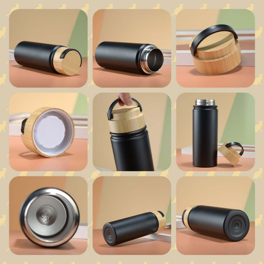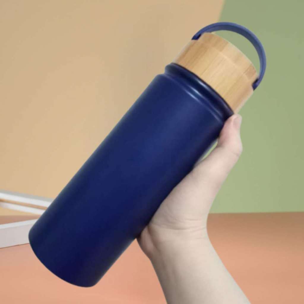 Termos Botol POLOS Tutup Bambu, Tutup Plastik Stainless Steel I Termos Tenteng Putar, Tenteng Plastik + Lock I 550ML/500ML I SUS 304/316 I HN-223/246/151