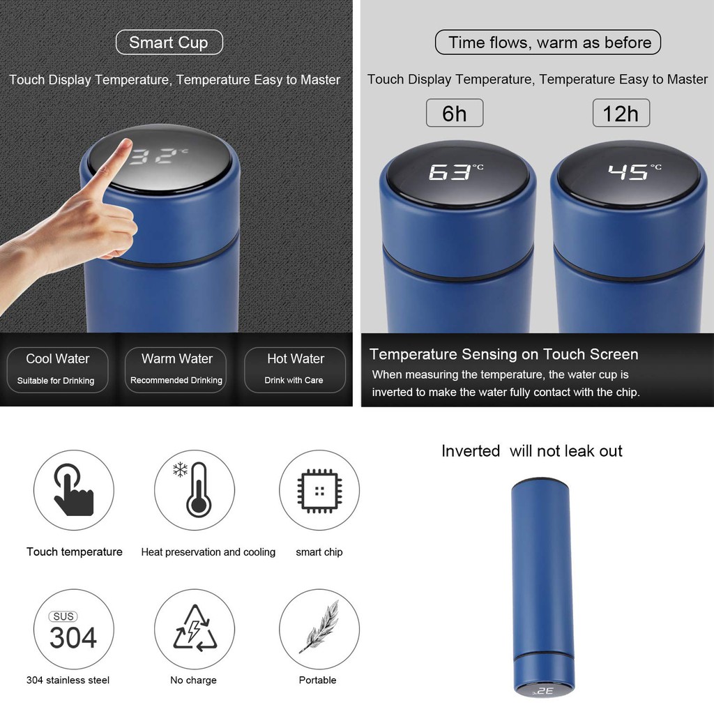 Termos LED Display Temperatur Suhu Botol Vacuum Tumbler Termometer 500ml