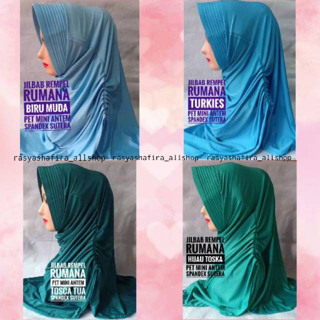 jilbab dinas antem rempel rumana biru muda turkies tosca tua hijau tosca