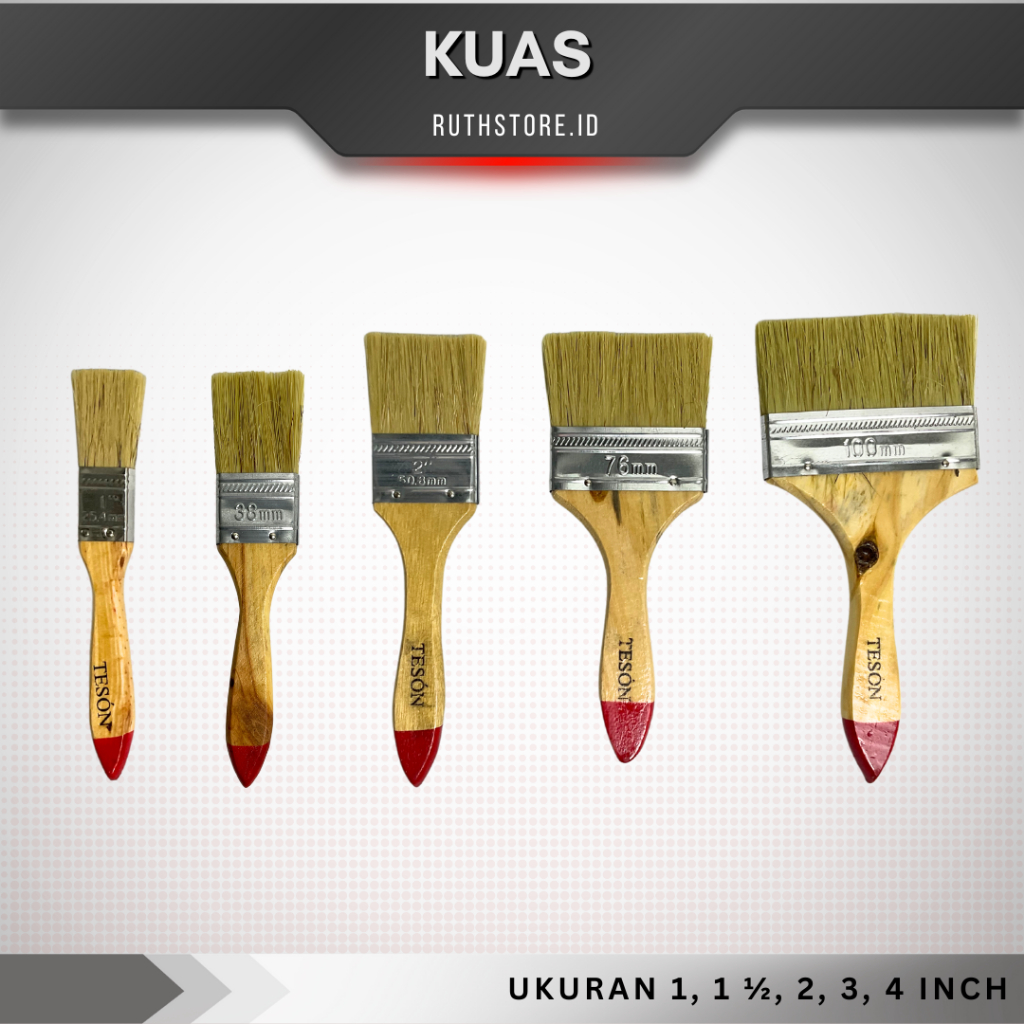 Teson Kuas Cat Gagang Kayu/ Kuat Cat Tembok/ Paint Brush Teson 1 inch, 1 1/2 inch, 3 inch, 4 inch